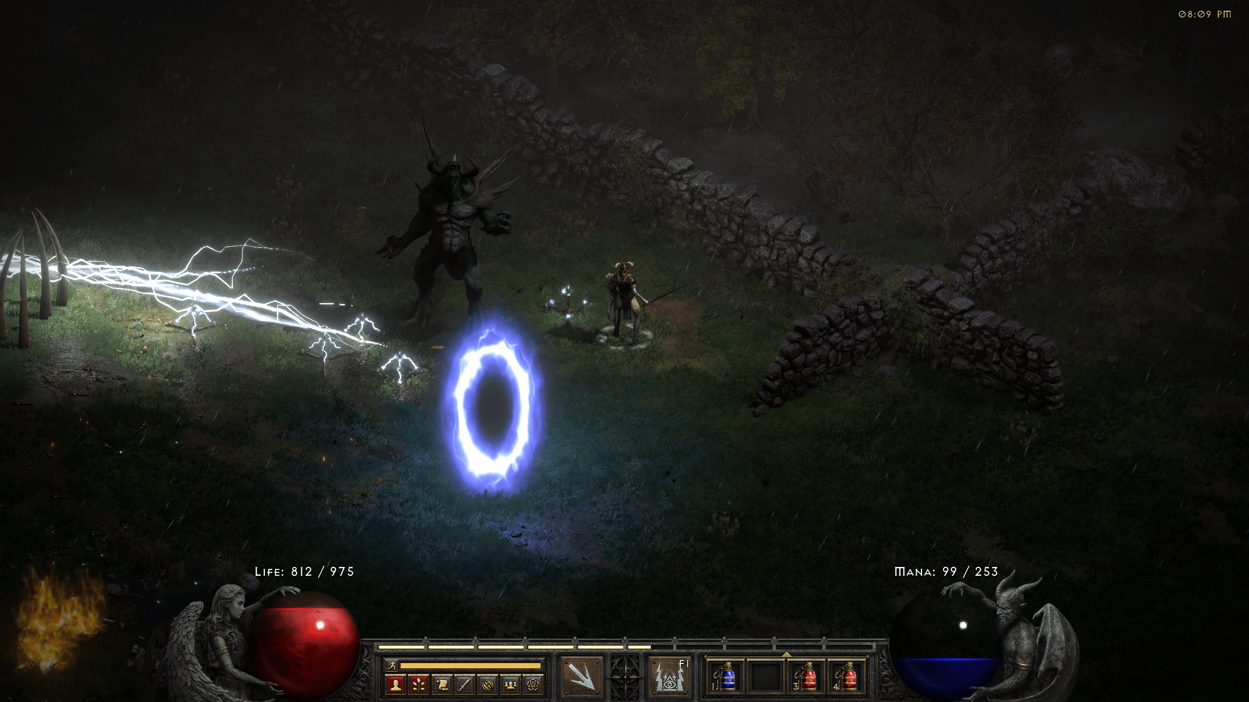 Next, I had to choose how to inflict physical damage to proc the PMH. I decided to shop a bow with Arrows from Charsi to play it safe. My chance to hit Diablo was 6% but with a fast bow and Burst of Speed that did not take too long. A useful trick is to have some source of elemental damage (I had lightning) to see when the arrow hits Diablo. His hp bar also changes a little if his hp is even slightly less than full. The information about PMH duration online is a little controversal, so I had to experiment a little to see how it works. I figured out that: 1) Once you inflict PMH the duration of the effect is long. As in, at least half an hour (80 minutes according to some sources). 2) The effect does not drop if you briefly Teleport to town. I had enough time to heal at Akara and replenish the potions. 3) If you wander too far from Diablo, the effect resets (2 screens according to some, but I tried to always keep him on my screen later).