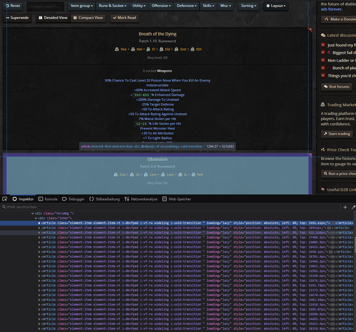 when on any page that offers sorting, such as the Runewords page, the browser's own in-page search feature has unintuitive behaviour.