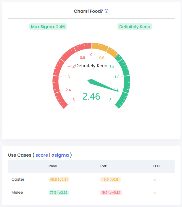 D2 Charsi Food is a database that uses statistics to evaluate a specific piece of gear against all other gear of the same class or type. For example, it can compare your particular ring against all other rings submitted by D2 players. The url is https://d2charsifood.com/. Many folks at d2io keep it bookmarked. If you're new to the game, "Charsi food" is slang for trash gear, which is usually sold ("vendored") to the NPC