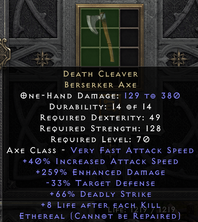 My luck this season has been insane, first the 43 life, +1 Javelin & Spears skiller I made in the cube (sold for 6 Ber 1 Lo), then I made and sold a 400/31 Phase Blade Grief for... was it 7 or 8 Ber runes? I forget. Then I found the 44 life, +1 Javelin & Spears skiller which I sold for 15 Jah runes. Now this?!?!
