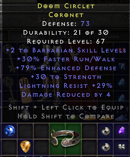 Thanksatari wrote: 2 years agoFor barbs Arreat's Face is a pretty good and cheap option. With only frw and no fcr or two sockets I fear this Coronet has no value.