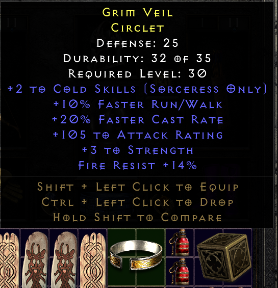 Price check it at Charsi , for LLD you always need 2os 2/20/2os magic with +2cold has a level req of 30 and would be 100times better then this due to sockete and that Circlet would be given away for free.