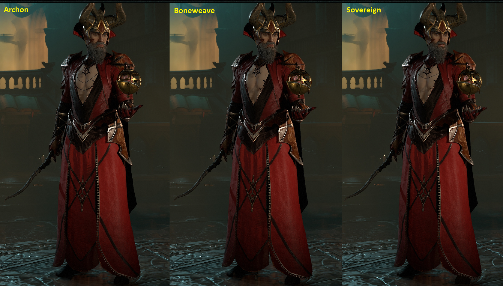 - Lazy-ass design + blatantly obvious moneygrabbing. There is no hiding the fact that they rushed this whole thing out the door, paying no mind to actually polishing things off or even creating different assets. "YOU GET TO TRANSMOG UR STUFF FOR CRAZY VARIETY! EVERYONE GETS TO BE THEIR OWN UNIQUE THING!"...right...until you look at what they actually call "different". Hell, if you actually look at "different" armor sets side by side, you're basically looking at one of those magazine-riddles where you have to spot and circle the 5 tiny differences (or more like 1 in this case). Simple example, yet again using pathetic sorcs, have a look at archon vs. Boneweave vs. sovereign armor sets. And yeah..that's the full set for each (helmet, chest, gloves, pants, Boots)..blizz actually calls that different and distinct... To make it even more pathetic, that same approach extends to a few of the shop-transmogs where you now get to pay a solid like 25 bucks for an equally tiny difference.