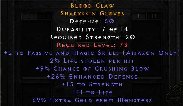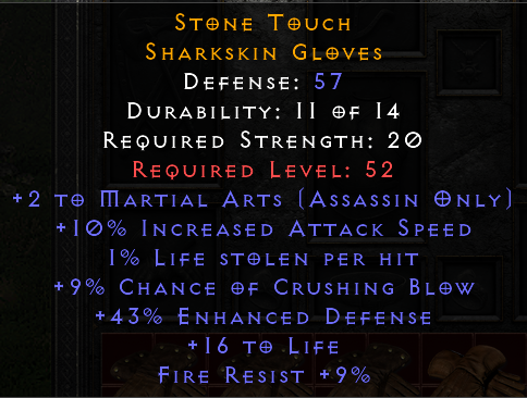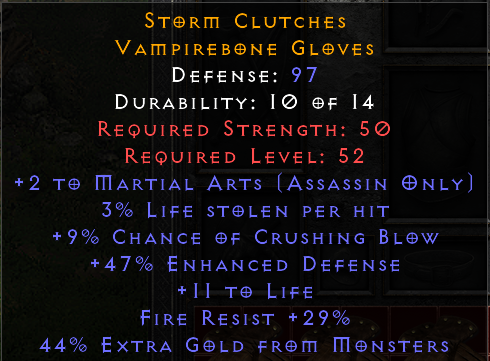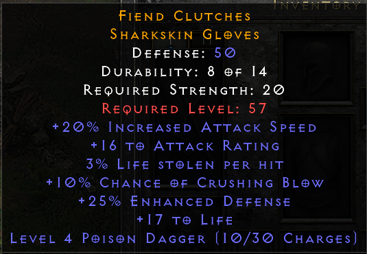 Fiend clutches -> Probably the best in all : 20 IAS / life stolen / high CB / too bad other affixes suck. Not sure for this one, but Vex +, label it for Zon