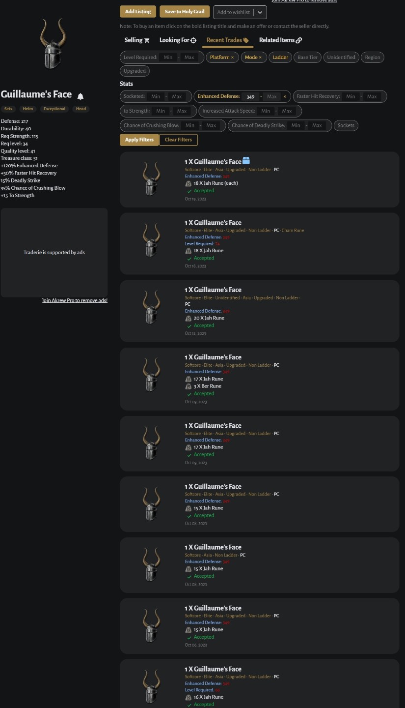 Actually insane prices, i still cannot believe it. Seems like all trades where on Asia side Non Ladder. Is Asia D2R filled up with Dupers and Hackers making the runes even more worthless? Congratz on the items thoZero187 wrote: 2 years agoHere's some recent completed sales on Traderie:aaabbbccc666 wrote: 2 years agoZero187 wrote: 2 years agoGot lucky twice so far tonight. First find was from Trav TZ: