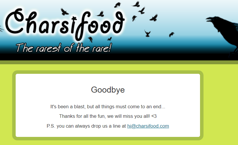 That's a different/wrong website (charsifood.com), which was a food blog or something. The actual charsifood we use for D2 items is d2charsifood.com, which has been down for awhile now