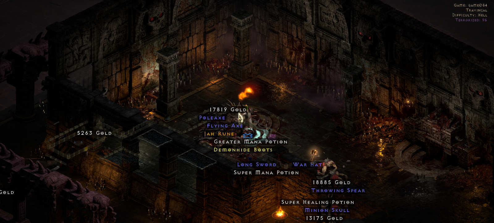 Ber, 2x Ohm , Vex (or two dont remember for sure) 3xIST ,few keys (3-4 ?) palla torch 18/18 from uber. nice Gheed 37/15/137