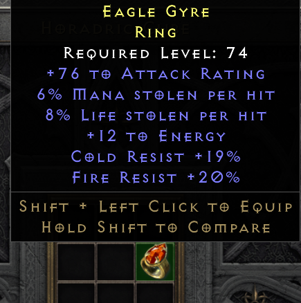 This is one of those rings that would become duped to high heaven if this was found back in Classic/LoD days...I tip my hat to you. This really is the best ring I've ever seen also. What is something like that even worth???