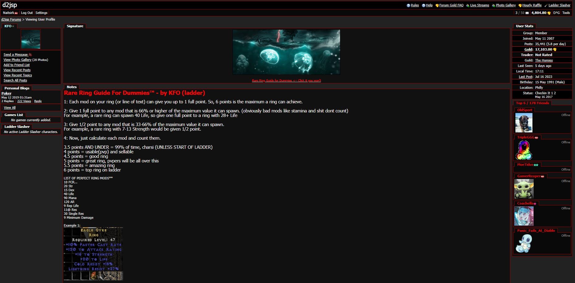 Because you cant post 5pt rings there unless its a 4pt blood craft with fcr 60life 6+ rep and 80-90mana or 60life 25str, its worth posting ft for sure, I tried to search for it but can't find it anywhere but now I will try the trophy room there and try find ur other posts. the trophy room on jsp is for pvp not pvm, edit I found your post now and its 5pt and not 6pt, its far from trophy but its still worth posting for trade there.
