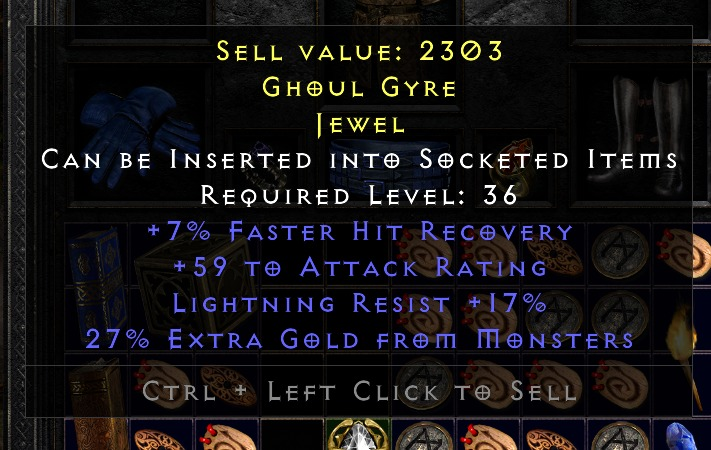 Its ok dude, don't beat yourself up over it. We've all made bonehead mistakes before. Yours is just on the high end of expensive lessons learned. Back when I was looking to make Exile, I was so focused on finding a 4os ethereal 45all res Sacred Rondache that when I found a 4os 45 all res non ethereal one I dropped in on the Ground...forgetting that Spirit was even a thing, and that the base was actually still very valuable. I realized it a week later.leafsax wrote: 1 year agogreat, that's my luck and my foolish thenLanceor wrote: 1 year agoWithout the sockets, you would have been able to sell it for around 30-40 Jah runes on non-ladder. :'(leafsax wrote: 1 year agoLucky or no lucky