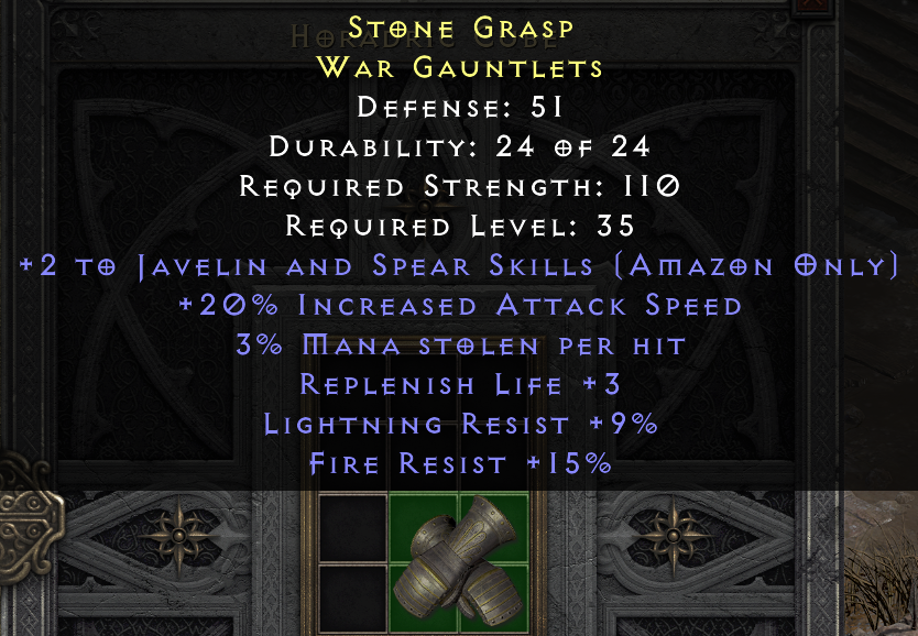 Thats a really good find! All good affixes. Life rep is so underrated for a caster (and let's be real, a javazon is effectively a caster even though she leverages IAS breakpoints)