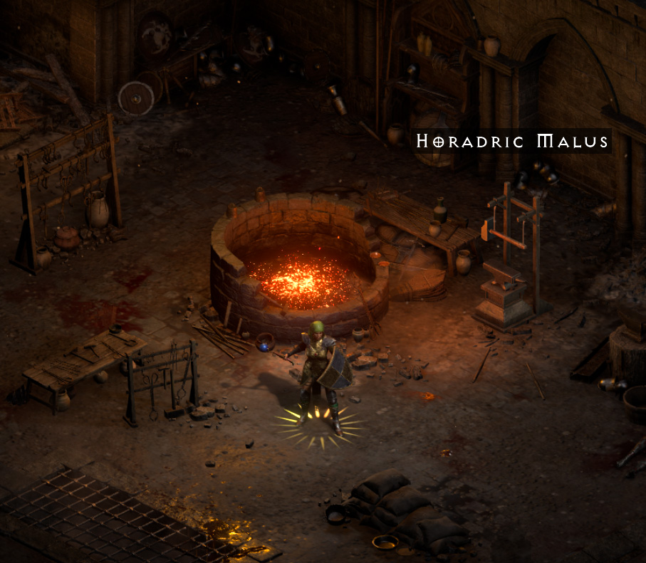 When Charsi fled the Monastery she left behind her Horadric Malus, an enchanted smithing hammer.If you can retrieve it for her, she will use its magic to strengthen one of your items with magical powers.