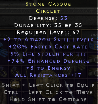 Amazon has really bad breakpoints for fcr and java will always prefer Griffon's Eye. For the rest you usually have other good options without fcr but if you want a Helm with fcr imho two sockets are more important than +2 skills. So I would take any offer I get for it.