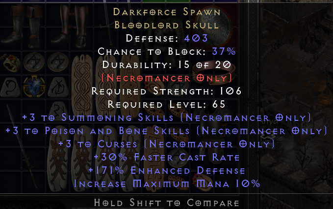 Sacred Targe, same, add perfect filter for the 45 all res. Good, too bad it's not Eth for Exile so more a Spirit base or if someone wants to try to socket it for 3os for a Dream.