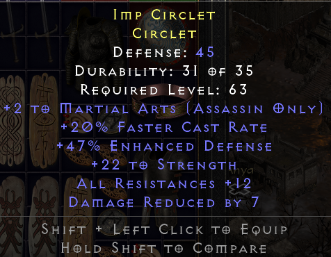 Zon Circlet ; 2/30 is ok for zons, mana steal is not bad, poison res is ok, life and mana too low. Ist to Vex.