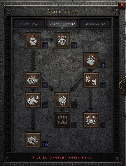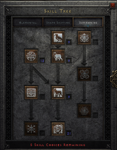 with just a point in Wolves and Bear so I can summon up some meat shields when needed, while still keeping my main skills at a high level.