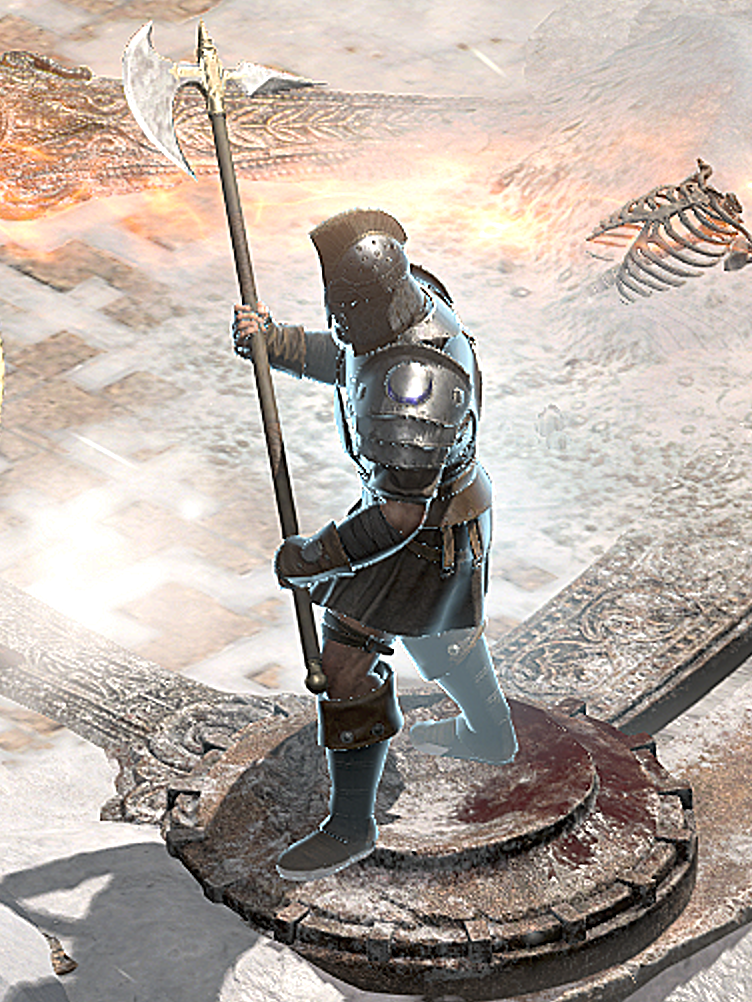 Korlic serves to keep the player under constant tressure during the fight with the Ancients. He can deal substantial damage if his Leap Attack connects, which forces the player to either stand their Ground to benefit from Defense, or to run in order to escape the powerful attack's reach. An Aura Enchanted Korlic can be particularly irksome, as he spends a good deal of his time Leaping - and therefore out of the reach of many attacks.