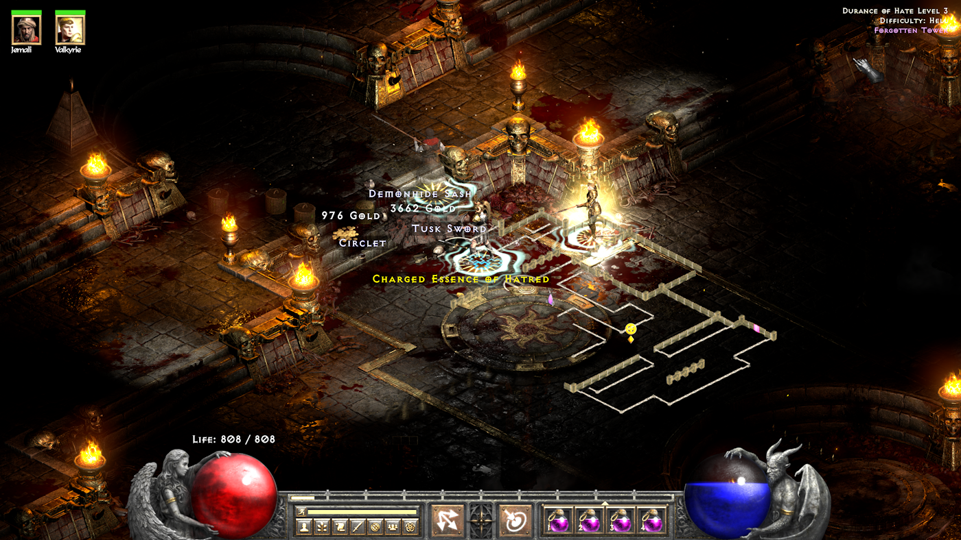 To test things out I ran Baal, Diablo, Andariel, and Duriel without even coming close to dying, so now it was time to go kill Stygians and then drop Mephisto for the finale. The first wave of Stygians I hit proc’d Life Tap (unexpected). Most of the stygians I killed from a distance but the second wave took my life down to a sliver, but still no Death. I was hit two more times and survived both before completely clearing Durance lvl 2, and on to lvl 3 which was surprisingly effortless.