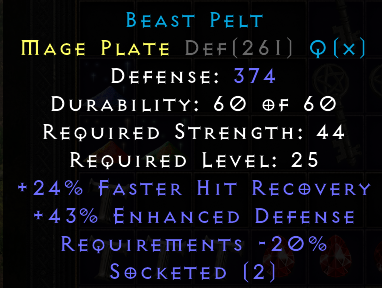 Initially this might feel like it has value (I thought it did at first), but it does not. However, this is comparable to a Mechanic's (2os) armor of Stability (24FHR). Players in this market will prefer an additional 2os (jeweler's for 4os) over the ed and -20% req.