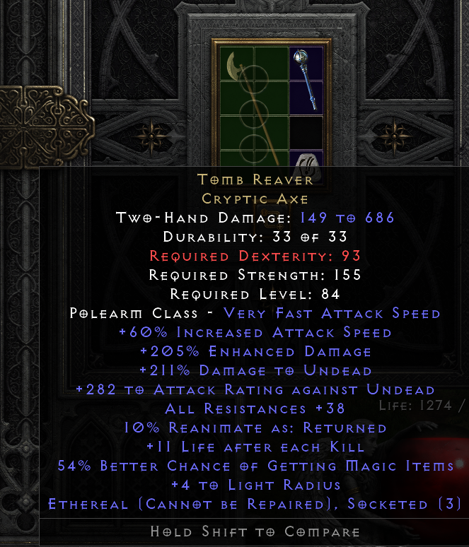 bigbikefan wrote: 1 year agoThat's more like a tongue in cheek as I've never found an ethereal Tomb Reaver, let alone a 3os one...