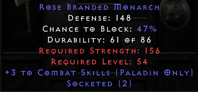 Charsi, even if it had a good suffix. Unfortunately the affix that rolled makes so 'jeweler's' can't roll. Without the 4 sockets, shields like Exile and Spirit are just too good.