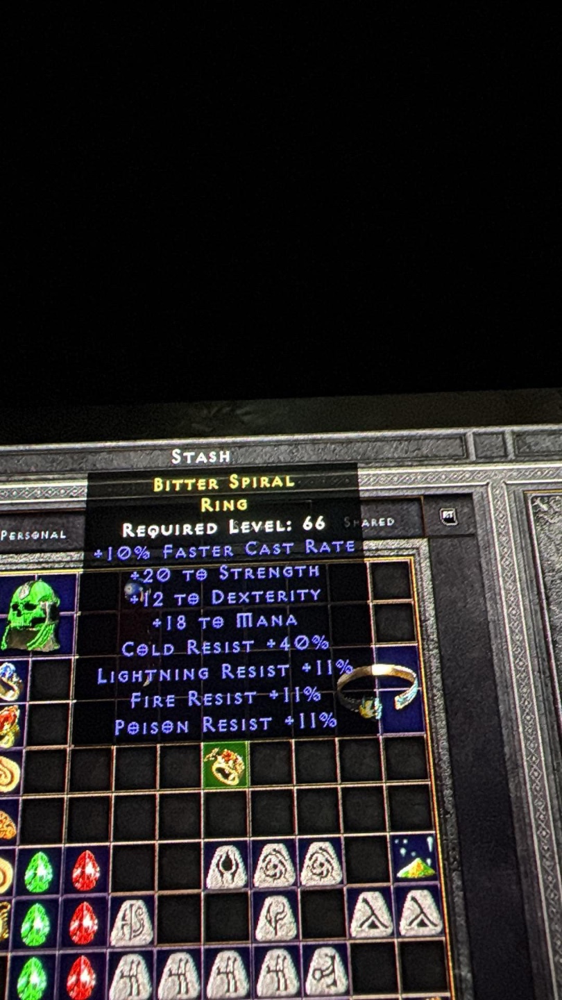10fcr, 20str,12dex,18mana,cold resist 40,lightning resist 11, fire resist 11,poison resist 11