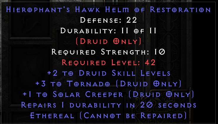 As far as I remember for the druid ones : For rares, 5 Nado has some value, especially if paired with good roll on Hurricane.