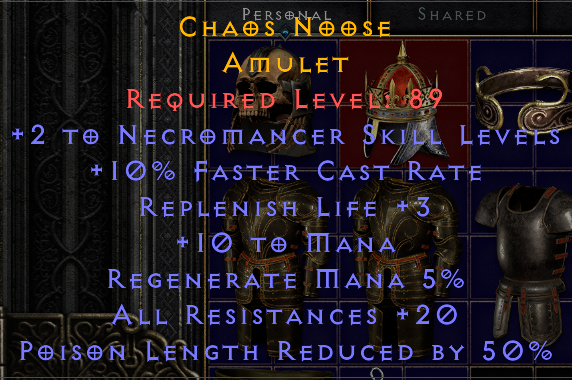 Planning for self use, but genuinely curious how close to GG this is for Necro Amulets. Only thing I believe is missing is the 10-20 FCR, but I think it's miniscule and can be got elsewhere. Rings, charms etc. If for some reason I were to sell this, what would be an approximate value on this. Thanks for looking!