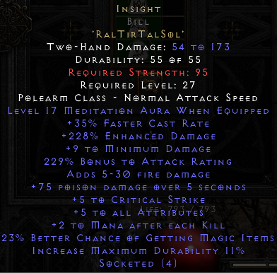 I caved and used my nightmare socket quest on a Superior Bill (non-eth, 9% ED) that I just found, so finally got an Insight: