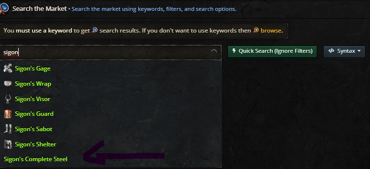 Type in sigon - let it populate and select Sigon's Complete Steel,