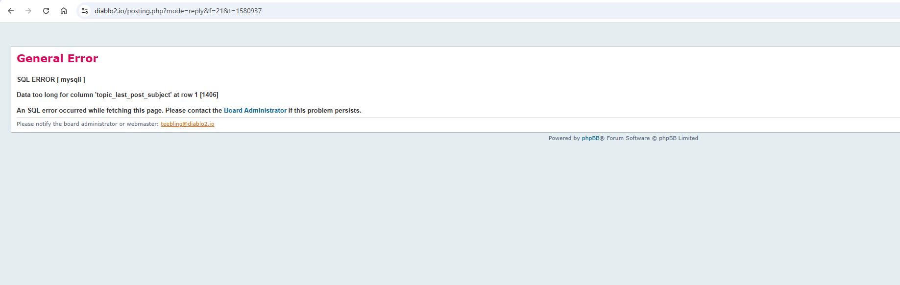Error on commenting on a topic: Data too long for column 'topic_last_post_subject' at row 1 [1406]