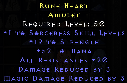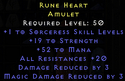 Rune Heart looks borderline useable for MLD (both str and all res rolled (almost) perfect) but I don't think anyone wants a sorc amu without fcr. Wait for a second opinion on that.