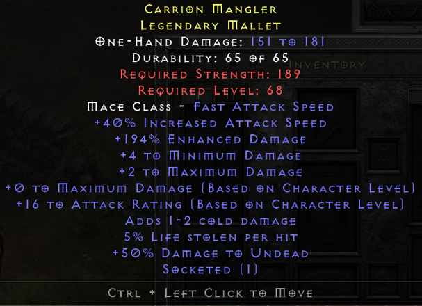 Is it already socketed with a jewel? But even if not I doubt that it has some trade value because it is not ethereal and only 40% ias, 194% ed and max dmg + ar based on char lvl are useful. The rest is not good and Legendary Mallet is a slow base.