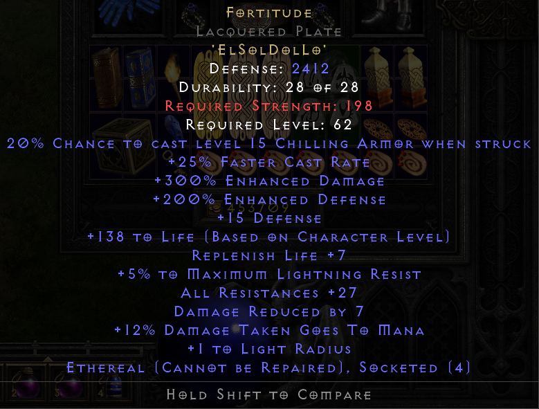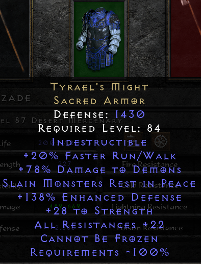 TZ Flayer: 1.5x to HP Fort roll: Andy's visage off champion Oblivion Knight, TZ WSK: Vex Rune off 8p Shenk's adds: Perfect ED roll on a Superior Eth. Demonhead: and the new icing on the cake, re-rolled a 37 vita GC into this, in a single attempt using 3 Perfect Topaz: