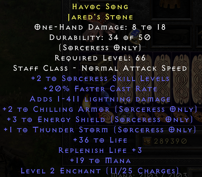 Rolled this earlier today. My 2nd lightning skiller with high life I have rolled offline. Last one was 30 life. Now I just need to make a Nova sorceress someday.