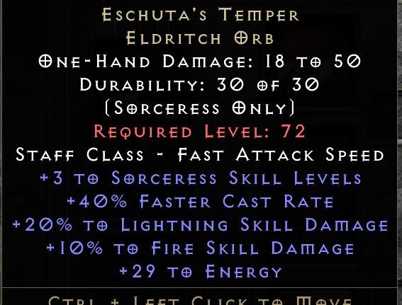 +20% Lighting Skills Damage (perfect)Eschuta's Temper