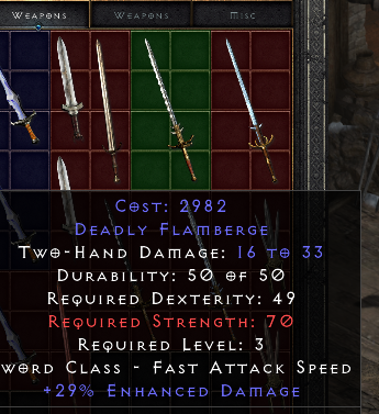 Now i found the unique The Atlantean. Looked like a decent sword shows 61-146 damage in inventory screen, but a whopping 477-1177 in character screen...