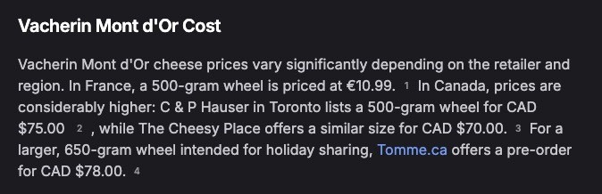 Wow wasn't aware its that expensive in canada, but makes sense. Wonder how much it costs in the US after trumps taxes. As i live close to the french border, prices here are more around 10-15 ā¬/cheese, even cheaper if you get the big "family" sized one. As the cheese is only seasonaly available between october and february, we usualy buy some more and freeze them. Frozen, it lasts for about a year. If ur into good cheese, i highly recommend to try if you come to france/southern germany or switzerland!