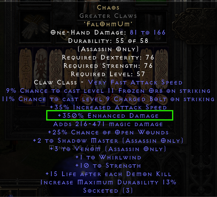 Gear I had was Enigma, draculs, andy, dual Mosaic, gore riders, verdungo, mara, Raven Frost and 9all res 10fcr ring. Charms I quickly filled with random life GC I had in my stash. BoS
