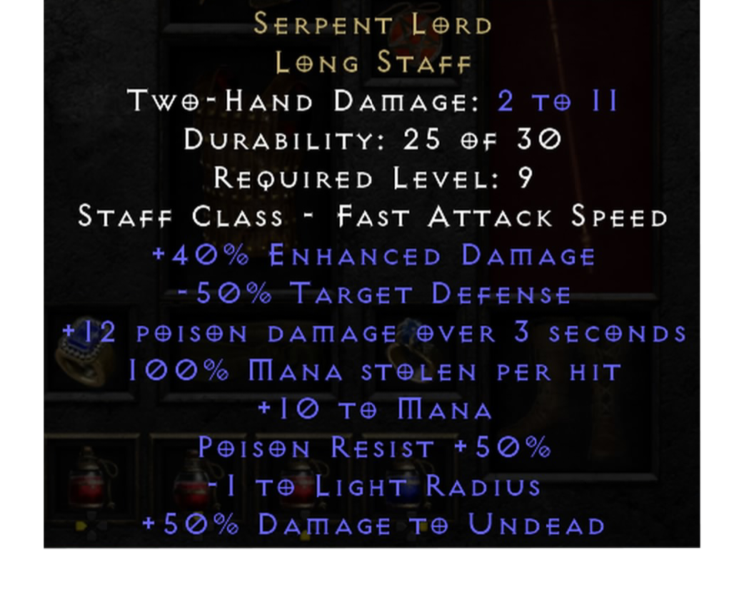 Uhhh, I would love to have you as a buyer on eBay.mhlg wrote: 4 months agoThe item is still perfect if it has perfects stats, charges and loss of some durability aren't imperfections because they're perfectly repairable.bigbikefan wrote: 4 months agoHmmm... never thought that's important. Not sure if it's on a character, or Charsi happily accepted it as is. If I locate it, I'll fix the screenshot.