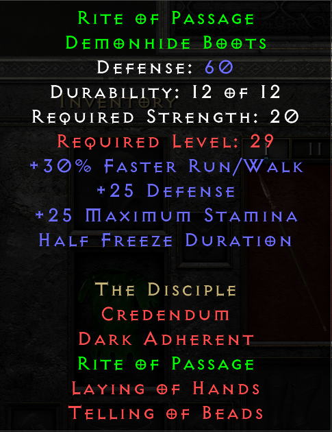 Hmmm... never thought that's important. Not sure if it's on a character, or Charsi happily accepted it as is. If I locate it, I'll fix the screenshot.