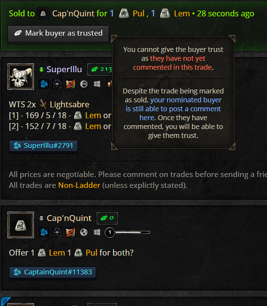I cannot give trust in a trade even though the trade partner has commented because "they haven't commented yet" : post3997380.html#p3997380