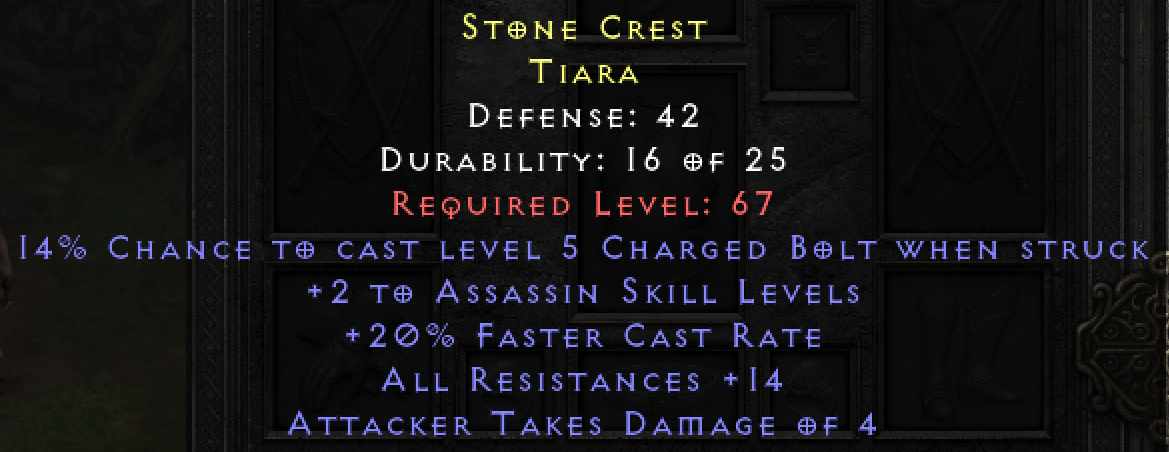 14% Chance to Cast Level 5 Charged Bolt When Struck