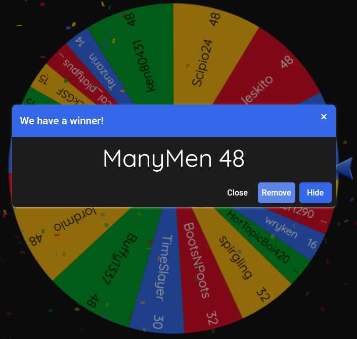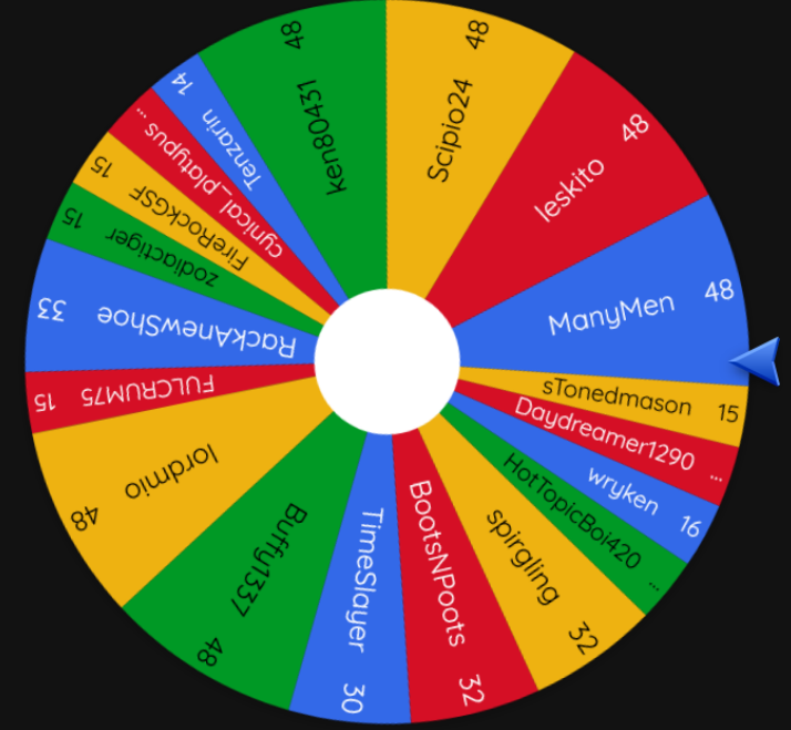 The winner of the fifty-seventh round iiiiiis.... @ManyMen, who had an 8.71% chance to win! (out of 19 participants)