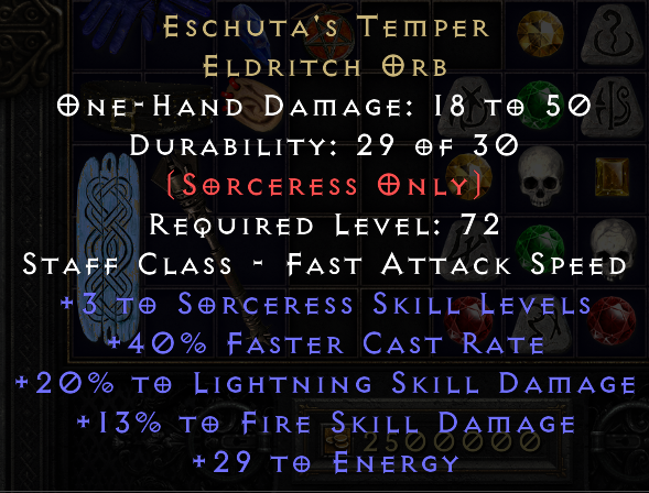 didn't realize it was valuable as I'd never played lightning (and only just getting back into D2); almost vendored it to clear space and try to get out of loot-goblin hoarding mode.