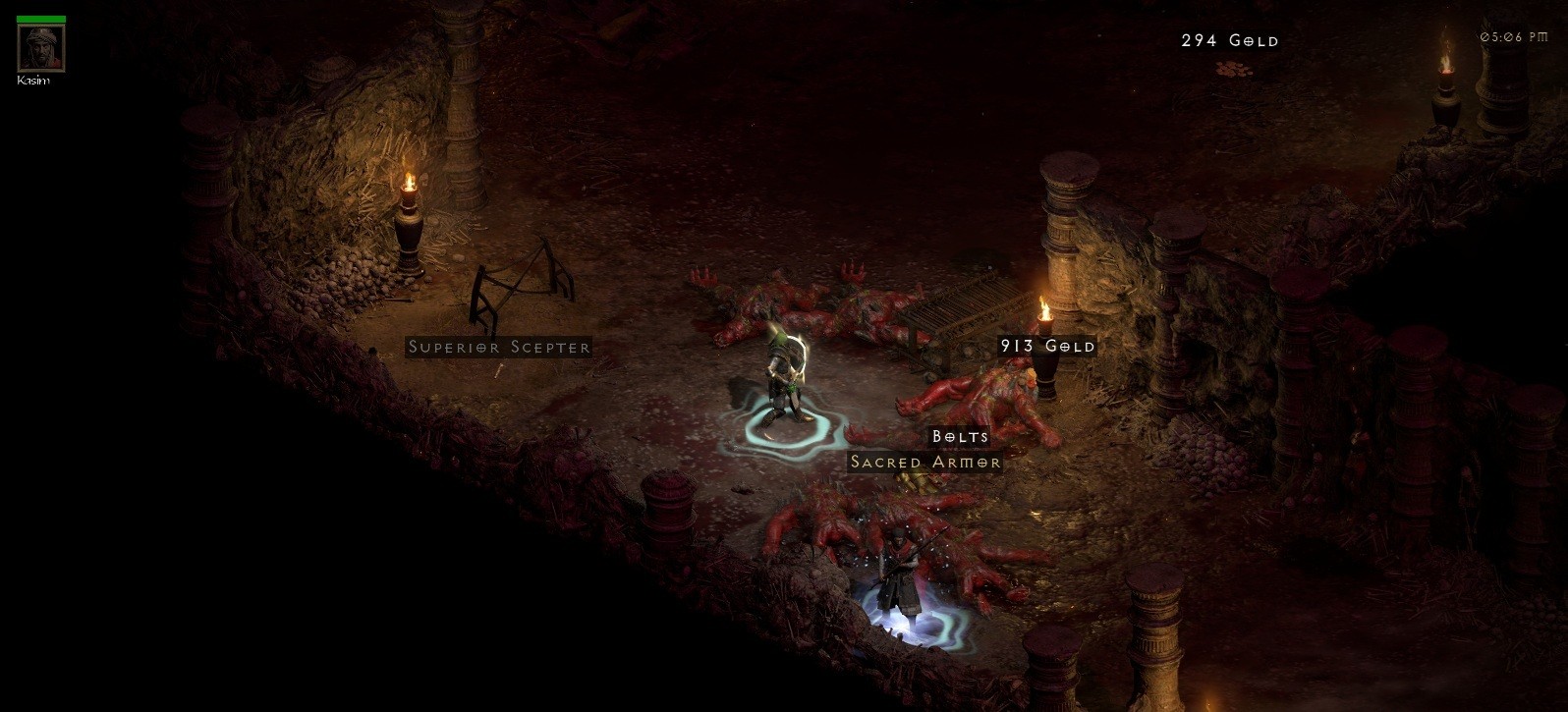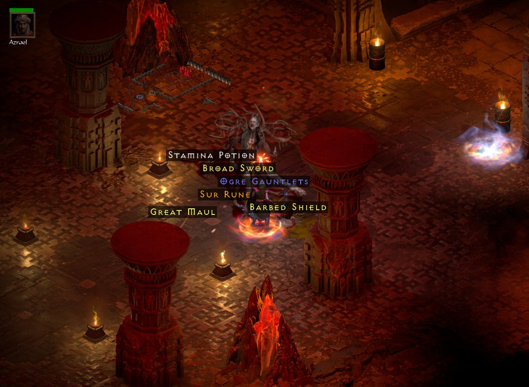 Unlike in quick runs, I cleared a safe space around the portal (this is HCL) for the guy, killed Andi, and went back to the portal. To my surprise there was a unique Shako hiding between the barrels. One of the creeps must have dropped it and we both missed it when first running pass.