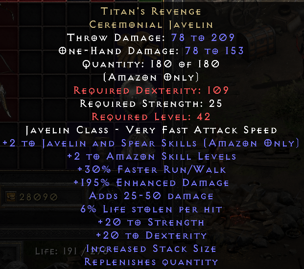 Very glad I checked. This and a Titan's Revenge dropped on the same day (good ED, not so good life steal), so the universe clearly wants me to javazon next.