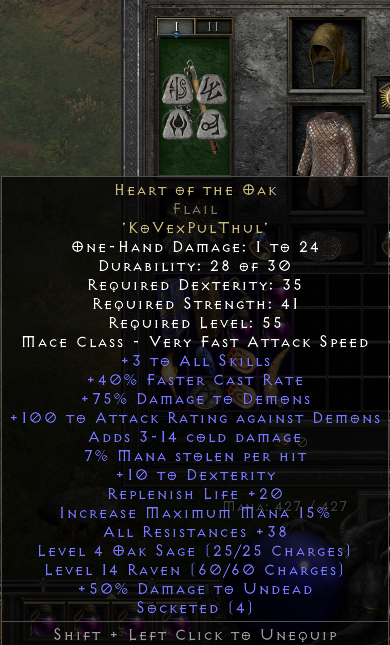brownSys wrote: 3 months agoAre 5 skill ones worth anything? I just found one like this yesterday. Highest I've ever seen after identifying all that I've ever found. Had to stash it just because. I know +6 and 40 ias is the GG one to get but maybe +5 has value?fredkid wrote: 3 months agoTZ Catacombs Level 3