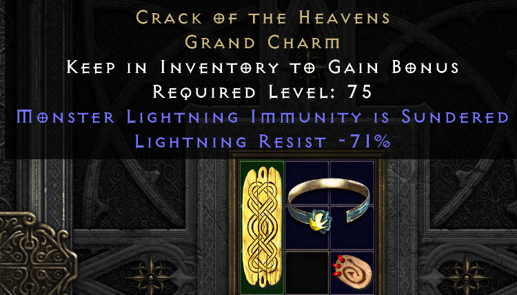 Just saw that CS is terrorised and came on. On my first unique monster kill in river i got dropped a Griffon's and later in the same run a -71 lightning sunder. I think the game might be trying to tell me something. This is on a physical bowazon with 7%mf.