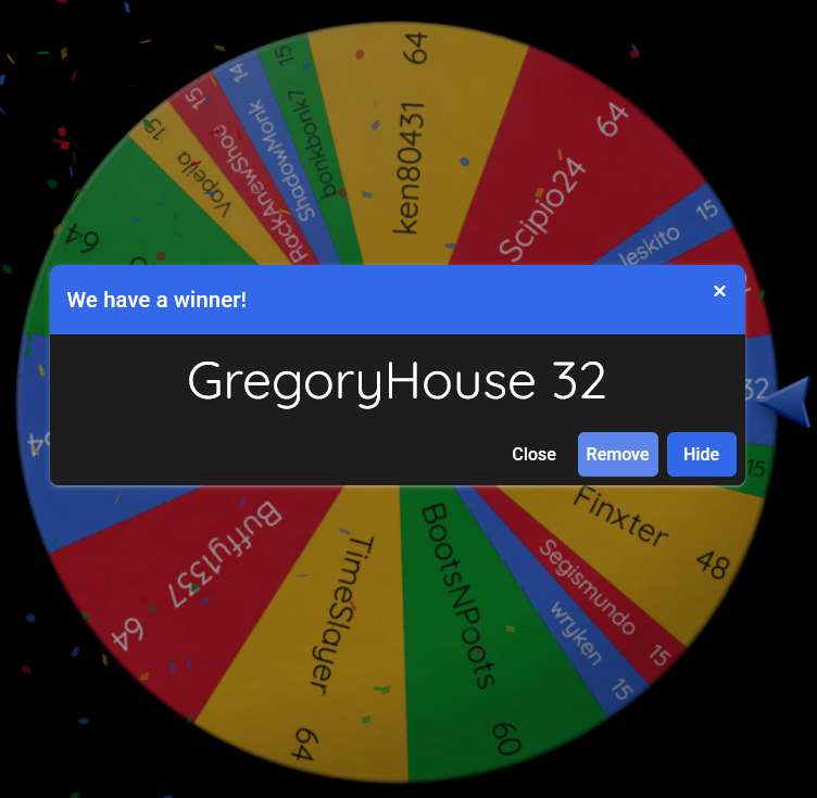 The winner of the sixty-fourth round iiiiiis.... @GregoryHouse, who had a 4.74% chance to win! (out of 18 participants)